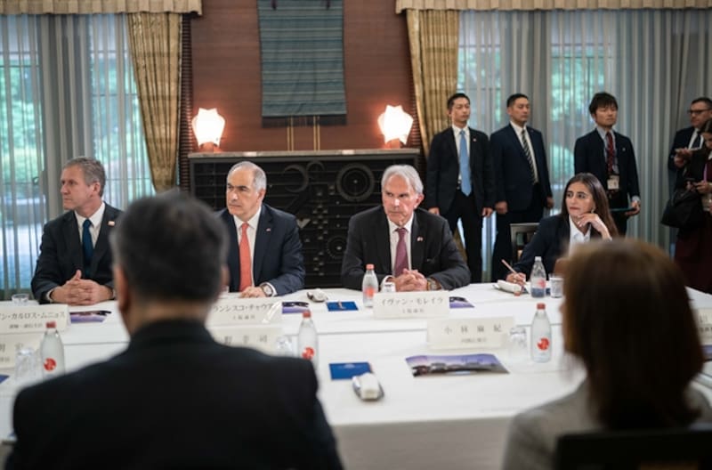 En la mesa, por el lado de Chile, estuvieron Boric, los ministros Alberto van Klaveren (RR.EE.), Esteban Valenzuela (Agricultura), Carolina Arredondo (Cultura) y Juan Carlos Muñoz (Transporte), así como la subsecretaria de Relaciones Económicas Internacionales, Claudia Sanhueza; el embajador en Tokio, Ricardo Rojas, y los senadores Insulza, Moreira y Chahuán. También estuvo una traductora de japonés, que se sentó al lado de Boric y explicó sus palabras ante el Primer Ministro Ishiba.