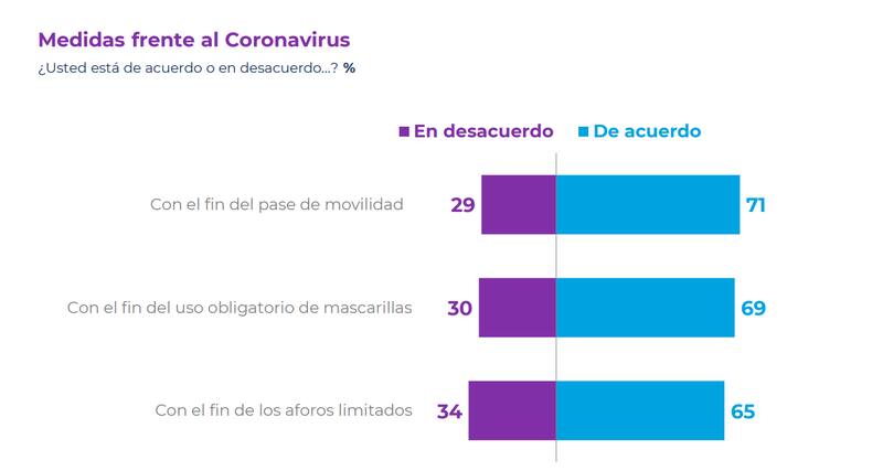 Finalmente, y en relación con los aforos limitados en los distintos recintos, un 65% afirmó que la medida debe ser eliminada, mientras que un 34% respaldó su continuidad.