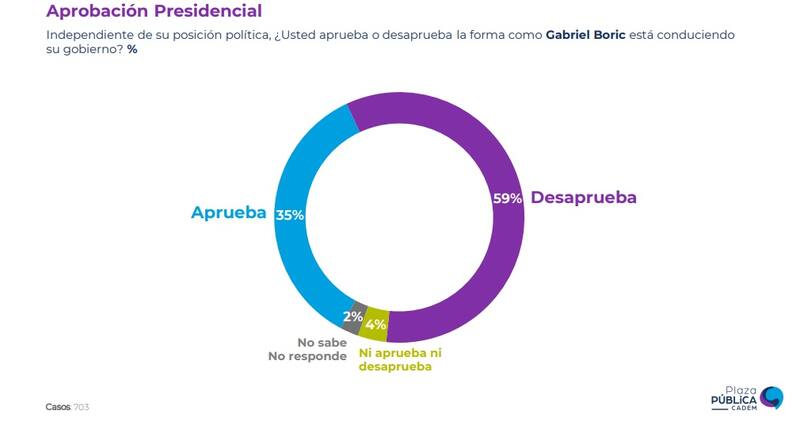 Por Rodrigo Gómez S.Cadem: aprobación del Presidente Boric cae cuatro puntos hasta un 35%