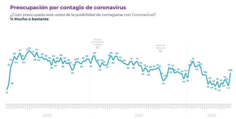 Finalmente, cabe resaltar que la preocupación de contagiarse con coronavirus se disparó en 17 puntos porcentuales, ya que en el sondeo del 10 de junio marcó solo un 27%, y en esta oportunidad alcanzó el 44%.