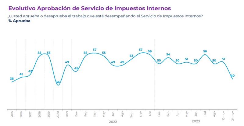 Precisamente, el SII consigna un desplome de once puntos en su aprobación en las últimas dos semanas, cayendo del 51% al 40%.