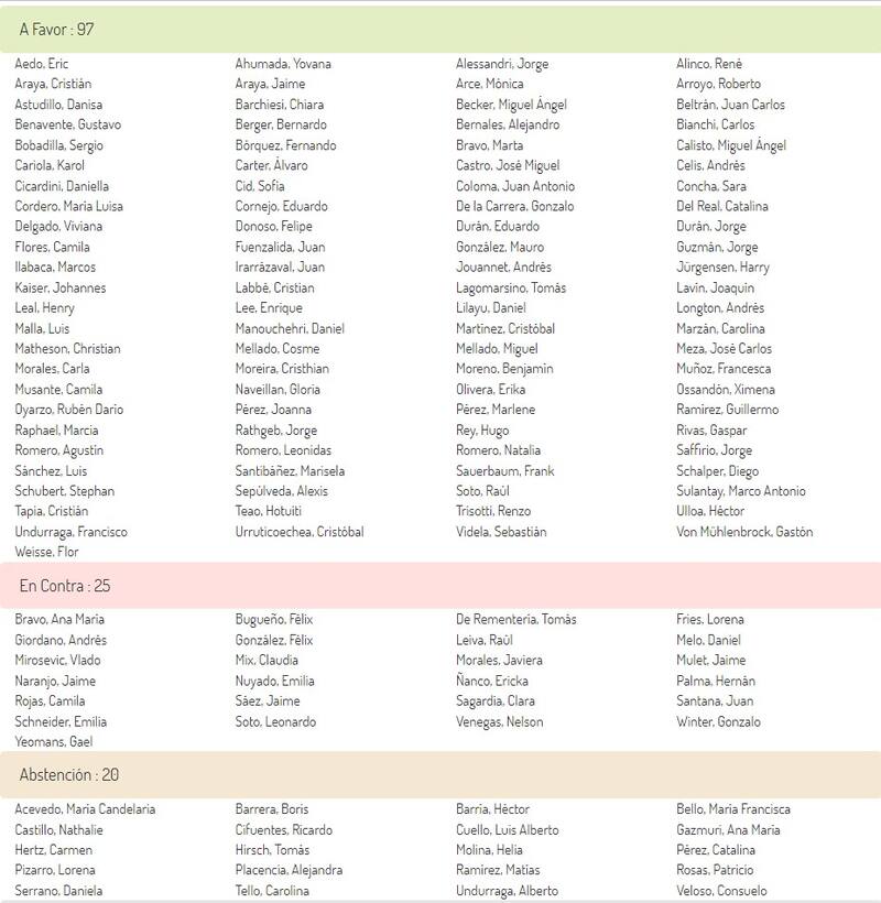 Para esto, la mesa recibió una propuesta de una terna compuesta por Ximena Ossandón (RN), Gustavo Benavente (UDI) y Jorge Guzmán (Evópoli), la que no obtuvo la unanimidad, por lo que debió ser sometida a votación y finalmente validada por 82 votos a favor, 56 en contra y 6 abstenciones.