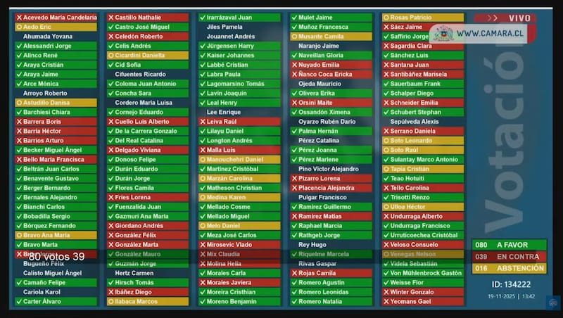 Por 80 votos a favor, 39 en contra y 16 abstenciones, la Cámara de Diputados aprobó la admisibilidad de la acusación constitucional contra el exministro de Energía Diego Pardow por el error que motivó un alza en el cobro de tarifas eléctricas.