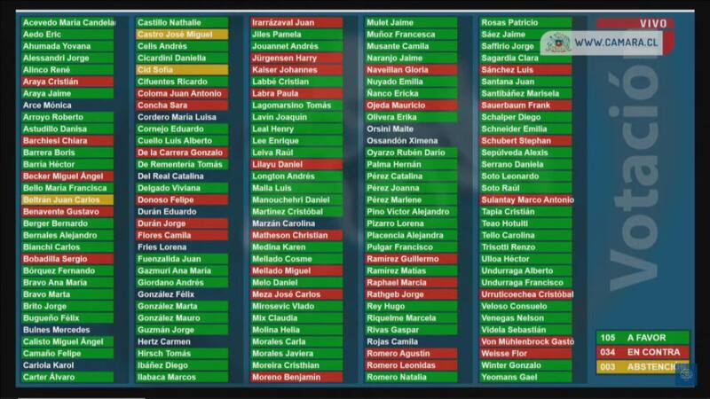 Con 105 votos a favor, 34 en contra y 3 abstenciones la Cámara de Diputados visó el proyecto de acuerdo aprobatorio del acuerdo regional sobre acceso a la información, participación pública y acceso a la justicia en asuntos ambientales en América Latina y el Caribe, conocido como Acuerdo de Escazú.