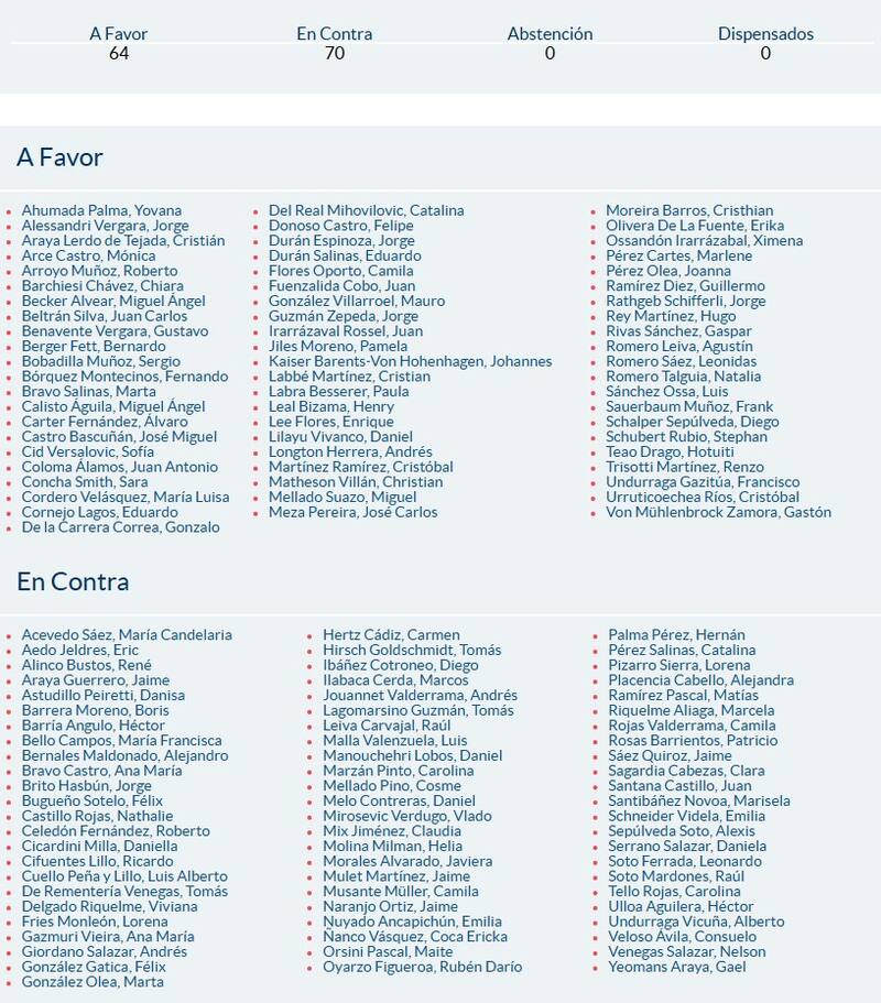 Con 70 votos en contra y 64 a favor, la Cámara de Diputados rechazó la admisibilidad de la acusación constitucional contra la exministra Maya Fernández por su participación en el contrato de la truncada compraventa de la casa del expresidente Salvador Allende.