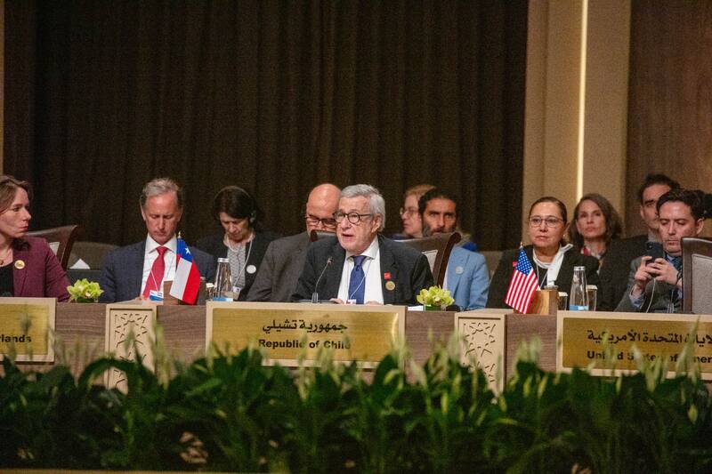 El ministro Alberto van Klaveren intervino este martes en la conferencia internacional “Llamado a la acción: respuesta humanitaria urgente para Gaza”.