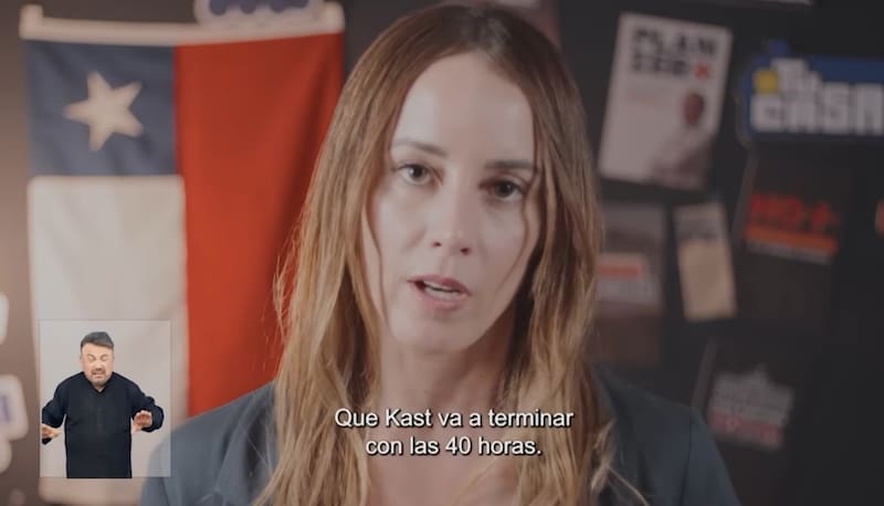 En el extracto audiovisual aparece la comunicadora leyendo en su celular las siguientes interrogantes: “¿Que Kast va a terminar con las 40 horas?”, “¿Kast va a terminar con la gratuidad universitaria?”, “¿Que Kast va a terminar con todos los subsidios?”, para luego entrar una voz en off que señala que dichas aseveraciones son “mentira”, con la consigna “no creas todo lo que lees”.