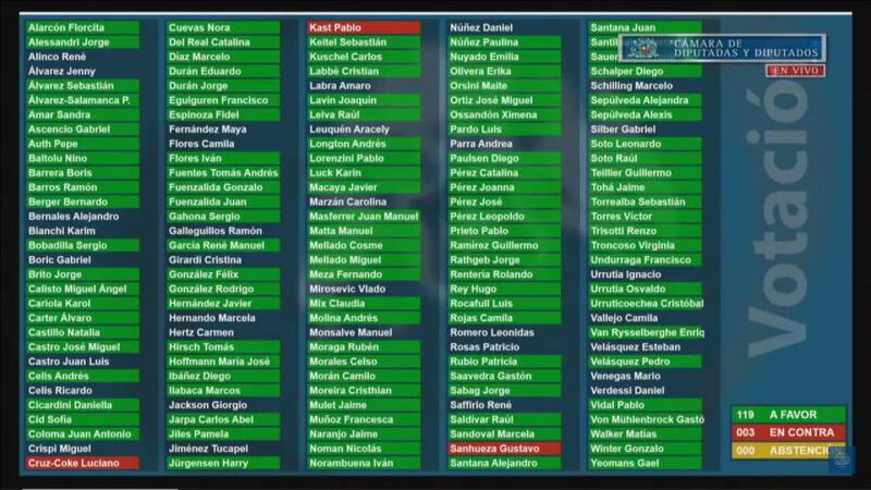El proyecto fue visado por 119 votos a favor y 3 en contra. Al no ser objeto de indicaciones, quedó aprobado en particular por la misma votación. La iniciativa no contempla mecanismo de reemplazo para convencionales que dimitan cuando sean independientes.