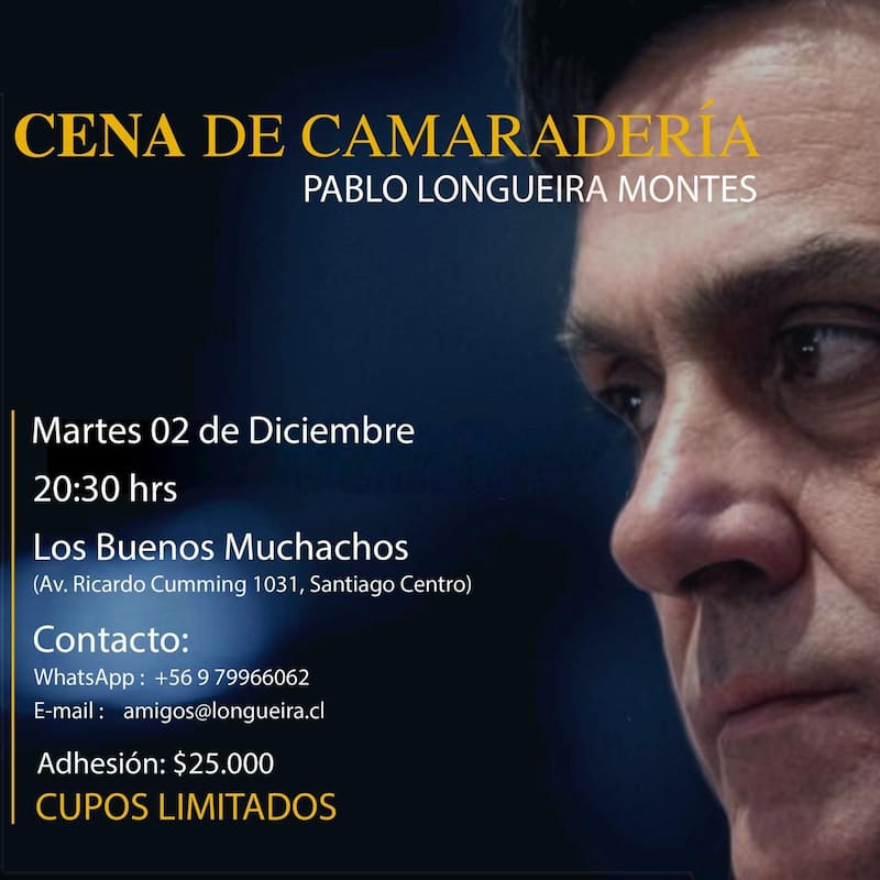 Tras ser absuelto por el caso SQM, un grupo transversal del sector hizo una invitación a una comida fijada para el martes 2 de diciembre, a las 20.30 horas, en el restaurante Los Buenos Muchachos de la comuna de Santiago.