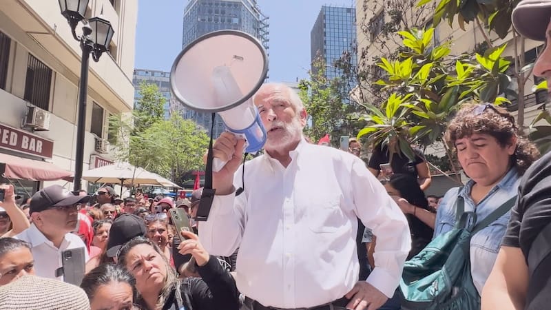 Con megáfono en mano: Montes agradece a comités habitacionales que llegaron hasta el Minvu para manifestarle su apoyo
