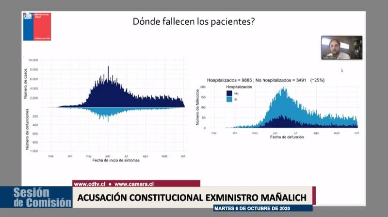 En la instancia, Araos hizo una presentación respecto del avance de la pandemia en Chile, revelando que uno de cada cuatro fallecimientos por coronavirus en el país ocurre fuera de un recinto médico.