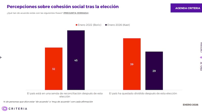 Por otro lado, la encuesta Criteria también evaluó las percepciones sobre cohesión social tras la elección.