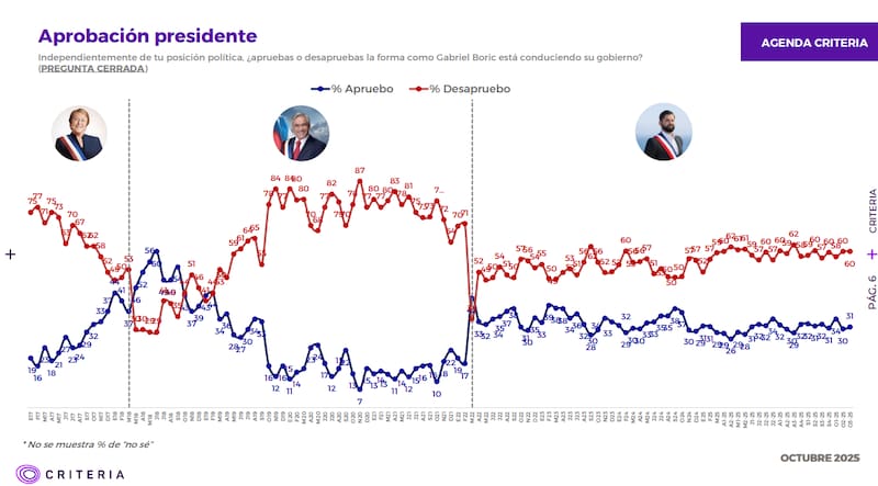 La medición por parte de la empresa de consultoría y estudios de opinión también registró el apoyo entregado al gobierno del Presidente Gabriel Boric.