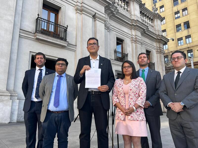El candidato al Consejo Constitucional por el Partido Republicano, Andrés Guerra, acudió junto a legisladores de la tienda opositora a entregar en La Moneda una carta dirigida al Presidente Gabriel Boric, acusando que fue despedido por razones políticas de su cargo en BancoEstado.