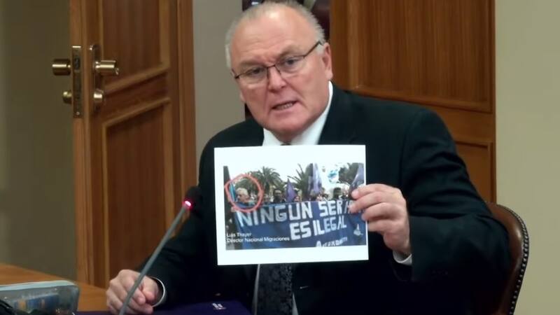Seguidamente, Becker expresó que “esto me lo negó el señor Thayer en la última sesión, en donde conversé con él al final de la misma, me negó el hecho de que él haya estado en esto, sino que me dijo que eran familiares de él. Yo veo claramente la figura del actual director nacional de Migración”.