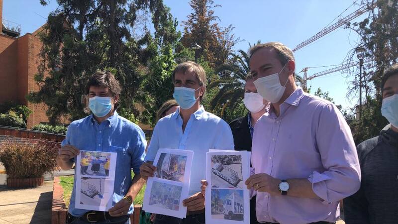 Sebastián Torrealba (RN), Luciano Cruz-Coke (Evópoli), Jorge Alessandri (UDI) y el concejal de la comuna, Santiago Mekis, anunciaron que interpondrán un recurso en Contraloría para que se investigue la denuncia de vecinos del sector, quienes grabaron a un camión de la Comuna de Santiago trasladando mobiliario municipal para una actividad organizada por la Coordinadora Nacional de Trabajadores No + AFP.