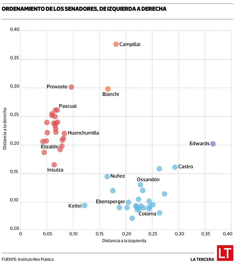 Un estudio del Instituto Res Publica revela que el senador republicano y la senadora independiente son, respectivamente, los polos más a la derecha y a la izquierda de la Cámara Alta. También concluye que tanto dentro de la izquierda como de la derecha hay parlamentarios que votan como "díscolos", como Sebastián Keitel (Evópoli) y José Miguel Insulza (PS).
