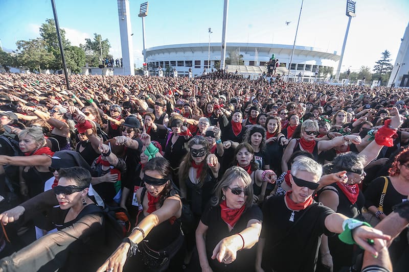 Jara da cuenta en sus redes sociales de la gran marcha del 25 de octubre, y de la manifestación de las mujeres frente al Estadio Nacional, donde el movimiento feminista LasTesis protagonizó la masiva coreografía al son de la canción Un violador en tu camino.