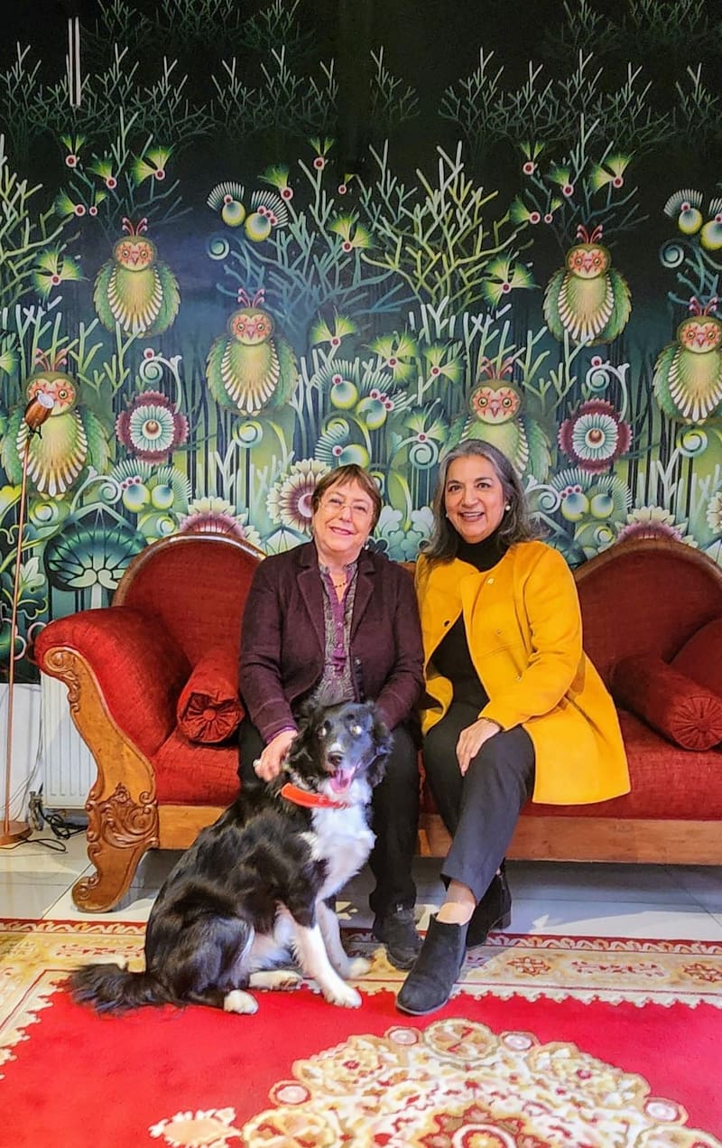 En consideración de la militancia socialista de la exjefa de Estado, el registro no cayó bien en el PS. Como contraofensiva, este martes Villegas y su equipo hicieron circular una foto de ella junto a la exmandataria -y su perro-, que se tomaron en las instalaciones de la fundación Horizonte Ciudadano antes de que Bachelet se fuera de viaje.