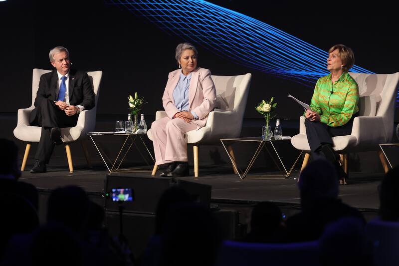 Uno de los que se le acercó fue el empresario Bernardo Larraín Matte. El presidente de la CMPC, exlíder de la Sofofa y director de Colbún bromeó con Laura Albornoz, a quien apuntó como “jefa de campaña”.