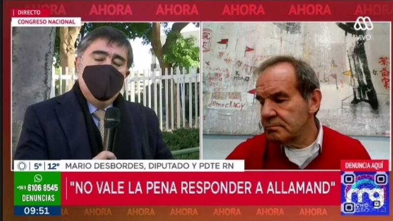 Desbordes: “Yo no sé cuál ha sido la gestión del senador (Allamand) estos meses. No tengo por qué calificarla ni criticarla. Pero no entiendo cómo dice lo que acaba de señalar. Llevamos tres meses, Andrés, pidiendo eso. Lo hemos repetido cuarenta mil veces. La respuesta del ministro de Hacienda, y yo le creo porque Ignacio Briones es un tipo correcto, un tipo decente, que dice ‘mira, este es el máximo esfuerzo'. Andrés, ¿para qué dices lo que estás diciendo el televisión? La verdad es que ese esfuerzo ya lo hicimos”.