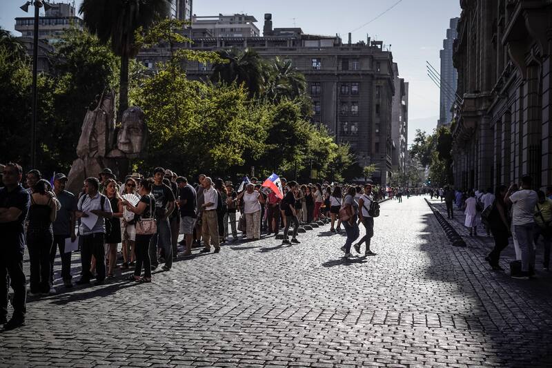 Mientras las exautoridades estaban tomándose la fotografía, en los alrededores del ex Congreso había cuadras completas con filas de personas que se aglomeraban para despedir a Piñera en el velorio, que se desarrolló desde las 9.00. Incluso, algunos organizadores hablaban que la extensión de las filas llegaba hasta la Alameda.