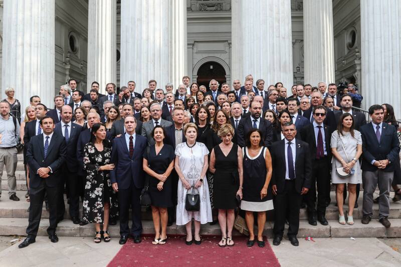 En la sede del Congreso Nacional en Santiago, en el marco del velorio del exmandatario, hubo asistencia completa de los exministros y exsubsecretarios de las dos administraciones que encabezó (2010-2014 y 2018-2022).