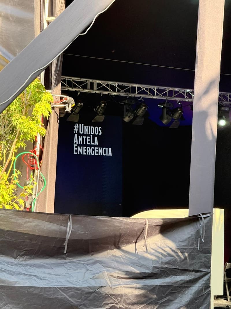 En la pantalla instalada en la oficina del presidente electo se puede ver al costado superior derecho el hashtag #UnidosAnteLaEmergencia, lema que será visible durante la presentación del gabinete de José Antonio Kast y que está dirigido a los incendios forestales ocurridos en el centro sur del país.
