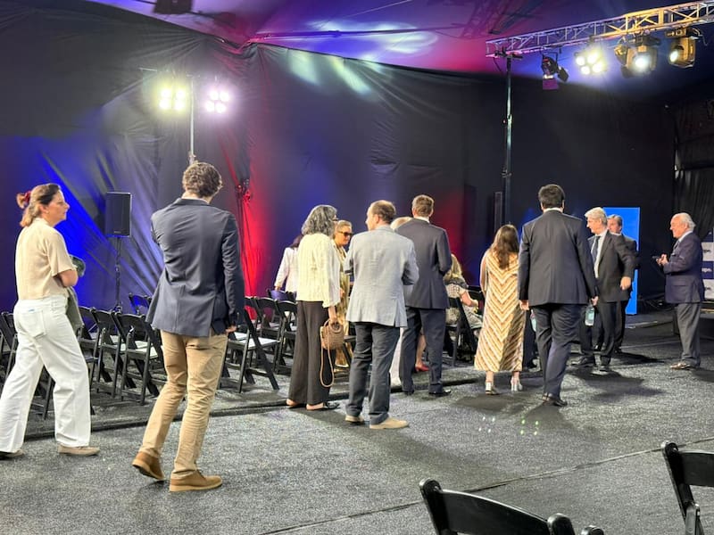 A poco menos de media hora para que se inicie la ceremonia, diversas personalidades, parlamentarios, representantes de partidos políticos, y familiares de los futuros ministros van tomando lugar en las dependencias de la oficina del presidente electo, a la espera de que comience el acto oficial.