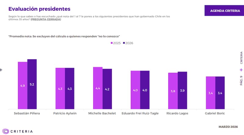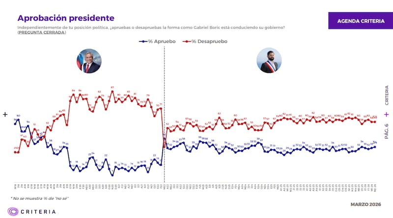 Este domingo 8 de marzo se publicó una nueva síntesis de resultados de la encuesta Criteria, la última en medir la evaluación de la población al Presidente Gabriel Boric, que finaliza su período este 11 de marzo.