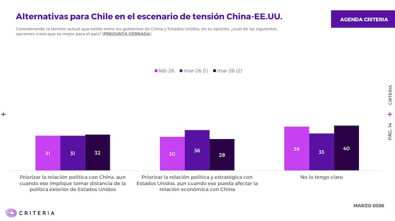 En tanto, 32% dijo que es mejor priorizar las relaciones con China, incluso si aquella significa tomar distancia de la política exterior de Estados Unidos.