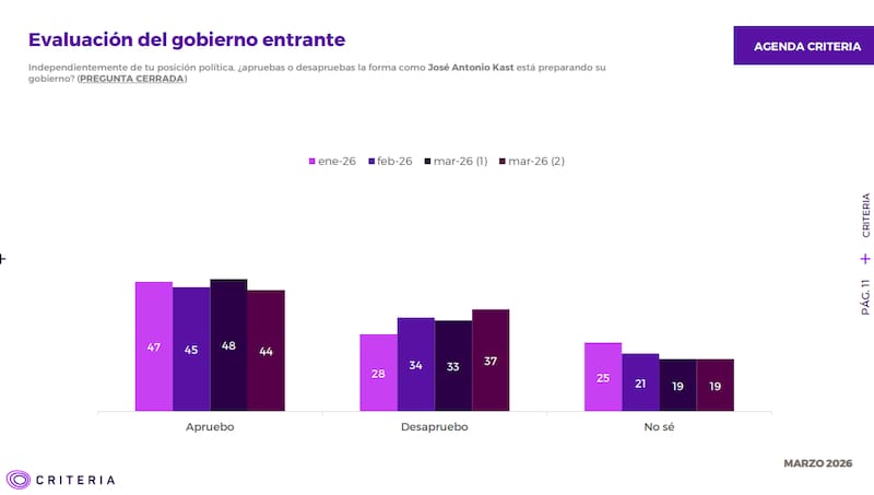 Sobre este tópico, un 44% aprueba la forma en que Kast se prepara para su administración.