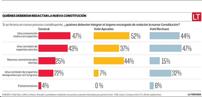 Las preferencias se concentran en la comisión mixta compuesta por representantes electos y expertos (47%). Aunque también hay respaldo a una comisión de expertos electos (43%).