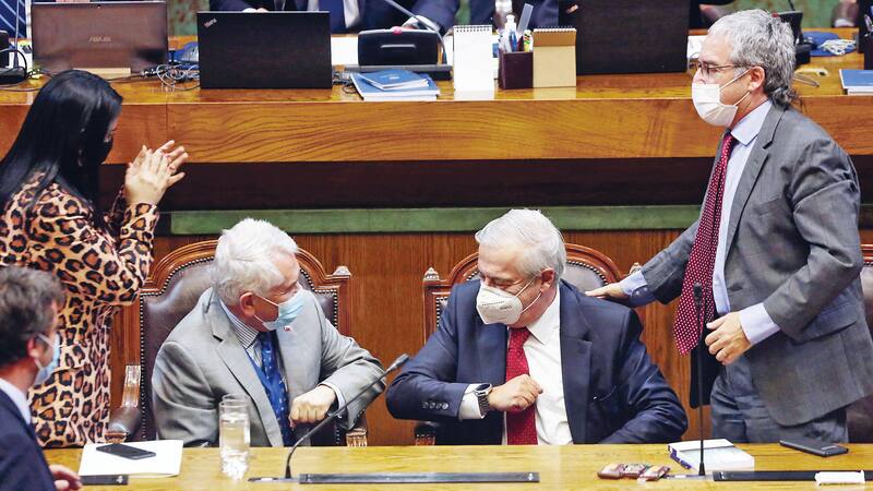 El triunfo fue celebrado con aplausos desde las bancadas de Chile Vamos y por efusivos abrazos de los ministros Cristián Monckeberg (Segpres), Karla Rubilar (Desarrollo Social) y Enrique Paris (Salud) y el subsecretario Juan José Ossa, quienes acompañaron al exsecretario de Estado la mayor parte de la jornada en la testera e, incluso, lideraron las gestiones para evitar la aprobación del libelo.