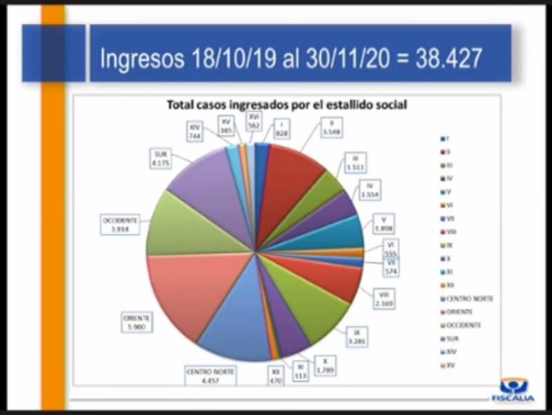 Así mismo explicó que desde el 18 de octubre al 30 de noviembre de 2020, se habían registrado 38.427 casos ligados al estallido y que los tribunales -en ese mismo periodo- habían dictaminado 928 prisiones preventivas.