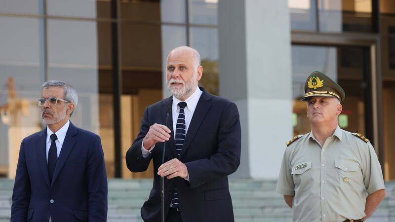 Desde el frontis del Hospital de Carabineros, el ministro del Interior, Álvaro Elizalde, junto al subsecretario de la cartera, Luis Cordero, se refirieron al estado del cabo segundo José Miguel Villegas, quien fue baleado la noche del miércoles al intervenir para frustrar una encerrona a tres mujeres en la intersección de Ramón Cruz con Eduardo Castillo Velasco, en la comuna de Ñuñoa.