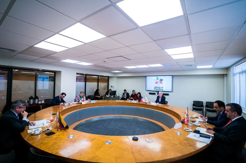 “A partir de hoy, miércoles 28 de junio, Chile ejercerá la Presidencia Pro Tempore de la Alianza del Pacífico (AP). Dicha decisión se adoptó en un encuentro celebrado en Santiago, en el que participaron el ministro de Relaciones Exteriores de Chile, Alberto van Klaveren; la embajadora de México en Chile, Alicia Bárcena; el encargado de Negocios a.i. del Perú en Chile, Renzo Villa Prado; y el encargado de Negocios a.i. de Colombia en Chile, René Correa Rodríguez”, se señala en un comunicado del organismo.