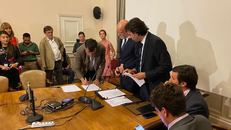 Fue justo a las 17.27 cuando los dirigentes de partido aceptaron los puntos del pacto. En ese momento, cuentan testigos, se escucharon algunas celebraciones. Luego vinieron horas vertiginosas en que se empezaron a mover todas las piezas necesarias para firmar el documento que reemplazará al Acuerdo por la Paz de 2019, al cual denominaron “Acuerdo por Chile” y que dieron a conocer, a las 21.50, los presidentes del Senado y la Cámara, Álvaro Elizalde y Vlado Mirosevic, respectivamente.