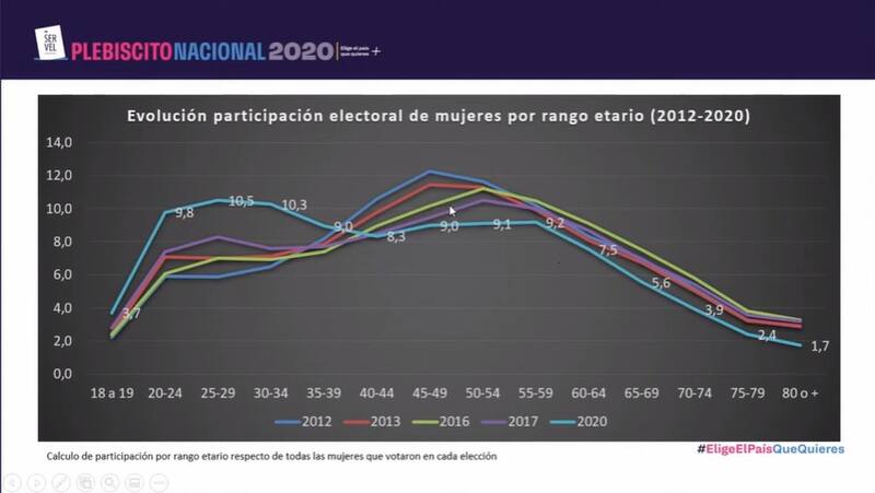“Una de las tantas hipótesis es que esto se debe al efecto estallido, de la mayor participación de los jóvenes; y en el otro caso (de los mayores) afectó la pandemia”, explicó la investigadora del Consejo Directivo de Servel, Daniela Hormazábal.