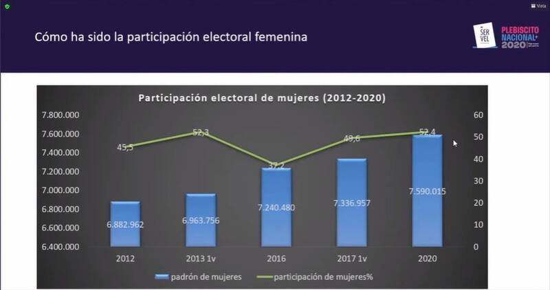 Es así como según el organismo en los comicios de octubre pasado 3.977.810 mujeres acudieron a las urnas por el plebiscito, lo que representa el 52,4% de su padrón (7.590.015).