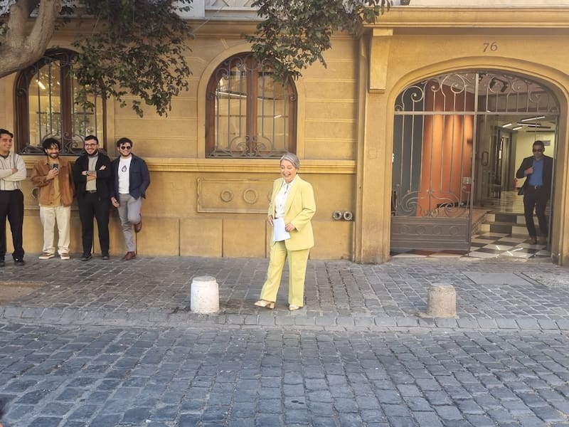 En ese marco, la carta comunista salió a hacer la vocería de su campaña en una escenografía particular preparada por su equipo en las afueras de su comando ubicado en Londres 76.