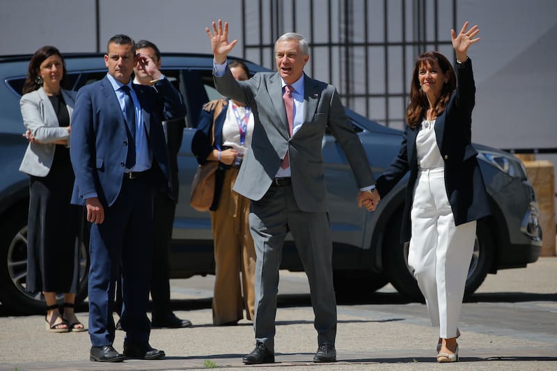 Cuando el reloj marcaba las 11.30, Kast y su esposa María Pía Adriasola se bajaron del auto que los transportaba e hicieron ingreso a Palacio, no sin antes saludar a los carabineros presentes.