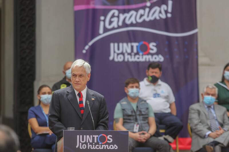 En tanto, en el discurso que dio en un escenario especialmente preparado para la ocasión, Piñera aseguró que “sin duda ningún país del mundo, tampoco Chile, estaba preparado para un desafío de esta magnitud, de esta naturaleza. Sin duda, conocíamos muy poco de este virus y tuvimos que ir aprendiendo durante esta pandemia”.