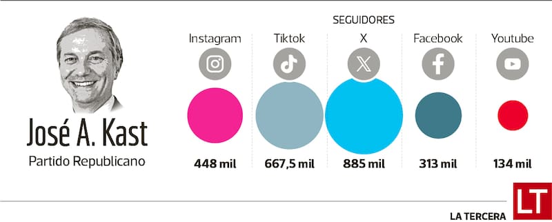 Es en esas redes sociales, de hecho, junto a X, donde el abanderado republicano cuenta con más seguidores, con 885 mil y 448 mil respectivamente, superando con creces al resto de los candidatos presidenciales.