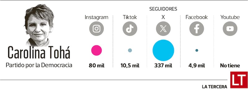 Si bien Tohá es más popular en X, desde su núcleo de trabajo descartan estar enfocados en una red social en particular. Aunque sí, dicen, analizan en detalle cada una de ellas. Y, en lo posible, intentan generar contenido diferenciado para cada plataforma.