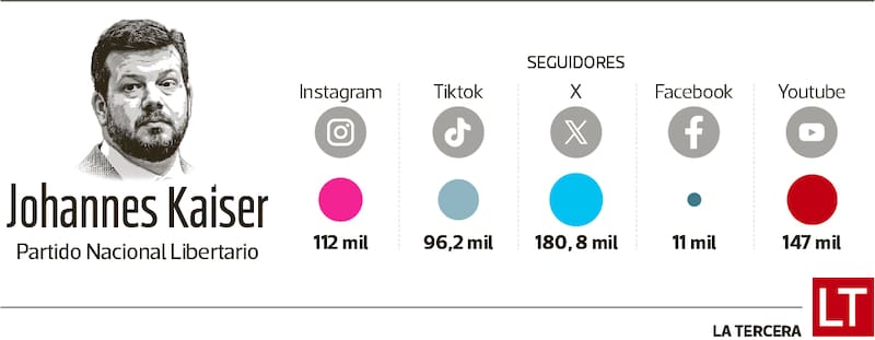 Fuentes del Partido Nacional Libertario (PNL) no esconden que la candidatura de Johannes Kaiser se fue formando en redes sociales, particularmente a través de su canal de YouTube “El Nacional-Libertario”. Fue ese mismo espacio, aseguran, el que lo llevó a ser diputado y empezar a configurar un movimiento en el país. En esa plataforma actualmente cuenta con 147 mil seguidores, más de 2 mil videos y 28 millones de visitas.