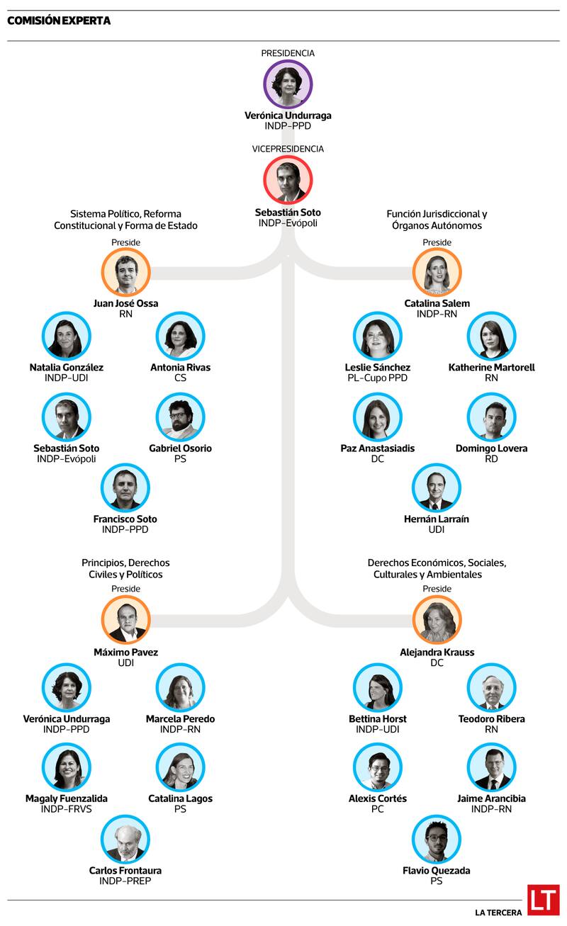 Lo otro que tiene que resolver la mesa de la comisión es el horario para sesionar. Este lunes en la tarde Undurraga, Soto y Rojas estuvieron reunidos para ver los asuntos prácticos y encontrar la forma en que se pueda compatibilizar los tiempos de cada uno de los expertos.