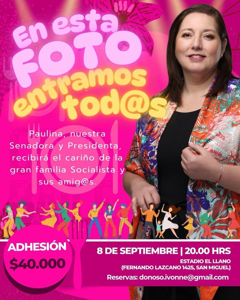 La cita estaba programada para el 8 de septiembre en el Estadio El Llano, en la comuna de San Miguel, y exigía un monto de 40 mil pesos; sin embargo, tuvo que ser suspendida por encontrarse fuera del plazo legal de campaña.