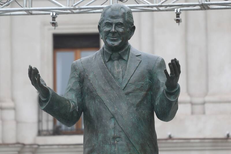 Una figura acompañada por la leyenda “La patria justa y buena” -que hace alusión al histórico discurso que pronunció en el Estadio Nacional tras asumir el cargo-, que busca conmemorar a quien gobernó entre 1990 y 1994 y dio inicio al periodo de la transición a la democracia.