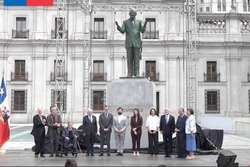 En la Plaza de la Ciudadanía, frente al Palacio de La Moneda, se realizó la ceremonia de inauguración de la estatua en homenaje al expresidente Patricio Aylwin Azócar (1918-2016).